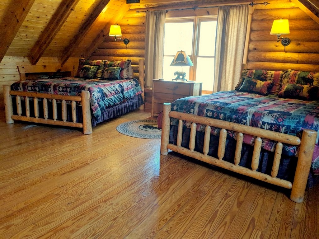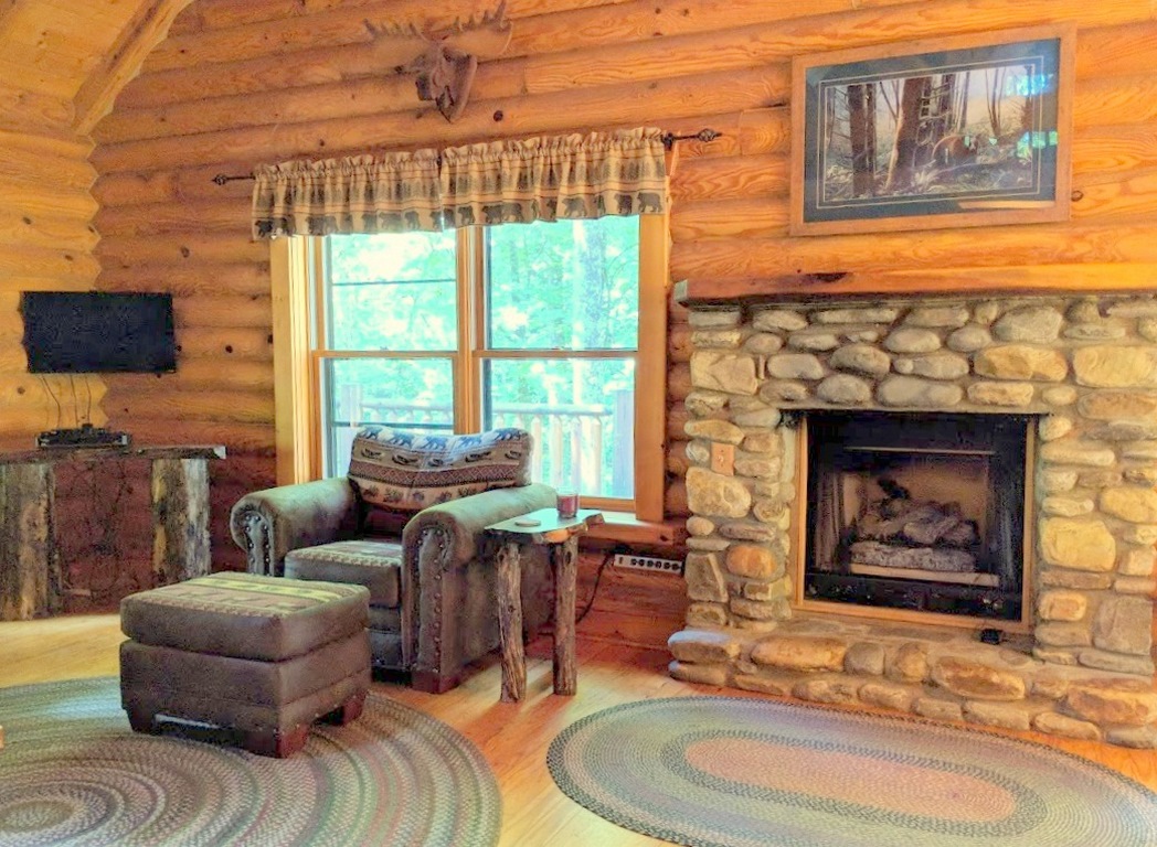 Secluded in 200 acres of wooded privacy this log home has been a popular vacation rental for many years.